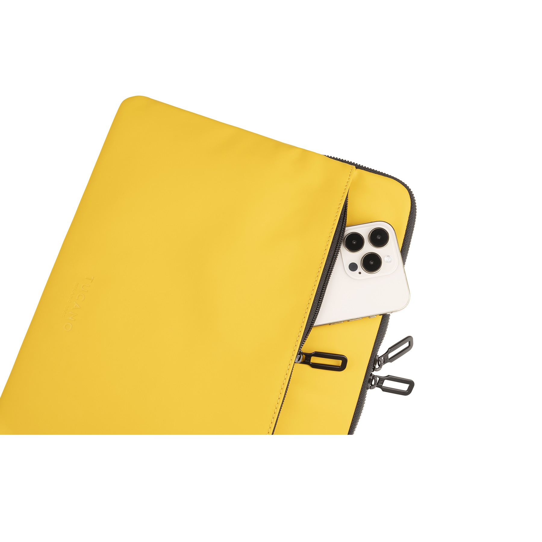 Водоустойчив калъф от гумиран материал, предназначен за 14-инчови лаптопи и 15-инчовия MacBook Air. С едно подплатено отделение с неплъзгащи се ъглови капаци, калъфът за лаптоп Gommo има удобен външен джоб за аксесоари.