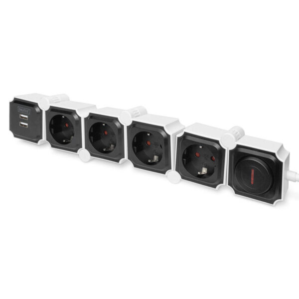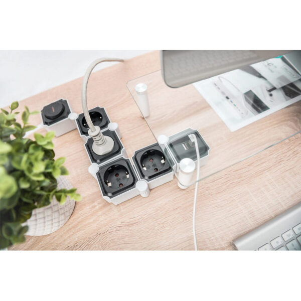 Сгъваем електрически разклонител, 3680W, 250V AC, 50 Hz. 4 гнезда за захранване, свободно въртящи се, 16 A. 2x USB A порта, 2.4 A. Осигурява максимална свобода на инсталация, подходящ за тесни пространства