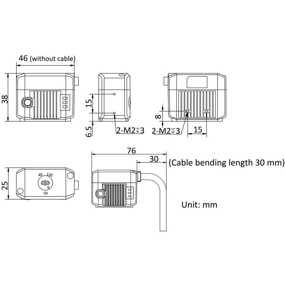 | Digital I/O | 17-pin M12 connector provides power and I/O, including non-isolated input × 1 (Line 2), non-isolated output × 1 (Line 3), bi-directional non-isolated I/O × 2 (Line 0/1), and RS-232 × 1 Device trigger via pressing button on side supported. |