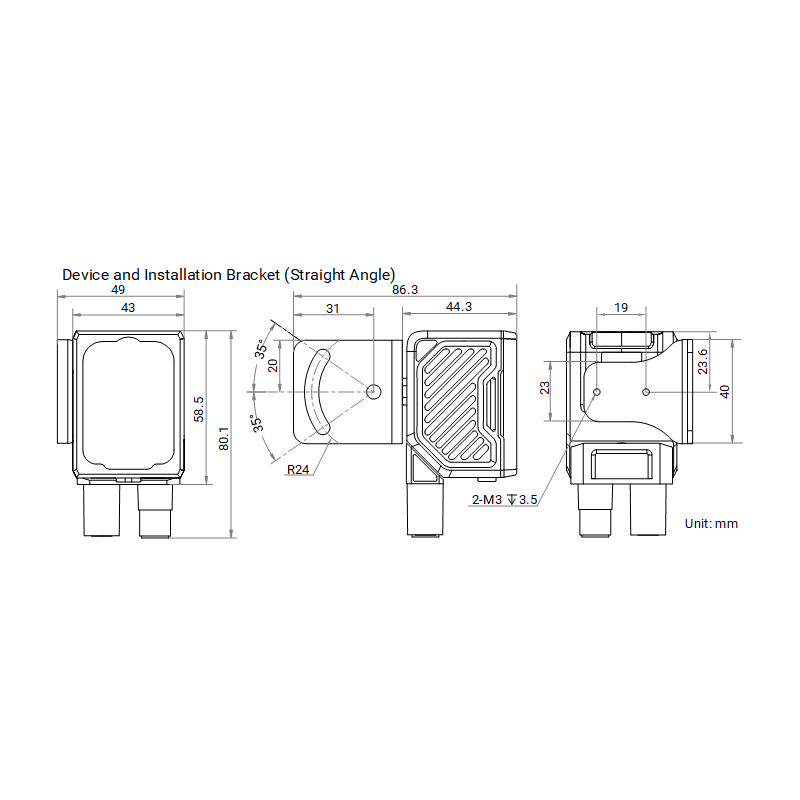 | Dimension | Straight angle: 80.1 mm × 43 mm × 44.3 mm (3.2″ × 1.7″ × 1.7″) Right angle: 58.5 mm × 43 mm × 65.4 mm (2.3″ × 1.7″ × 2.6″) |