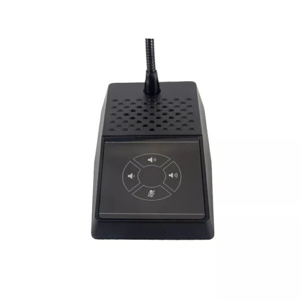 Интерком система, подходяща за безпроблемни разговори между 2 души, между които се налага да има стъклена преграда. За използване в банки, хотели, всякакви търговски и обществени гишета. Комплектът включва основен пулт с дълъг микрофон, вградена тонколонка и сензорни бутони за контрол на силата на звука откъм вътрешната част на гишето, както и външен модул с вграден говорител и микрофон, който се монтира от другата страна на стъклото на преградата и се свързва с кабел с основния пулт. Системата работи във full-duplex режим, позволявайки и двете страни да говорят едновременно. Разполага с вграден цифров чип за елиминиране на шумовете в звука и гарантира високо качество на комуникацията. В допълнение, разговорите може да се записват на външно устройство, което може да се включи към 3.5 мм изход на вътрешния модул. Напълно автономна hands-free работа, три нива на силата за звука + бутон mute.