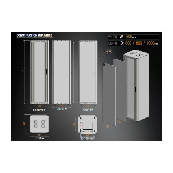 - Free standing ECO шкафовете са икономични модели 19″ решения с височини 26U/36U/42U
