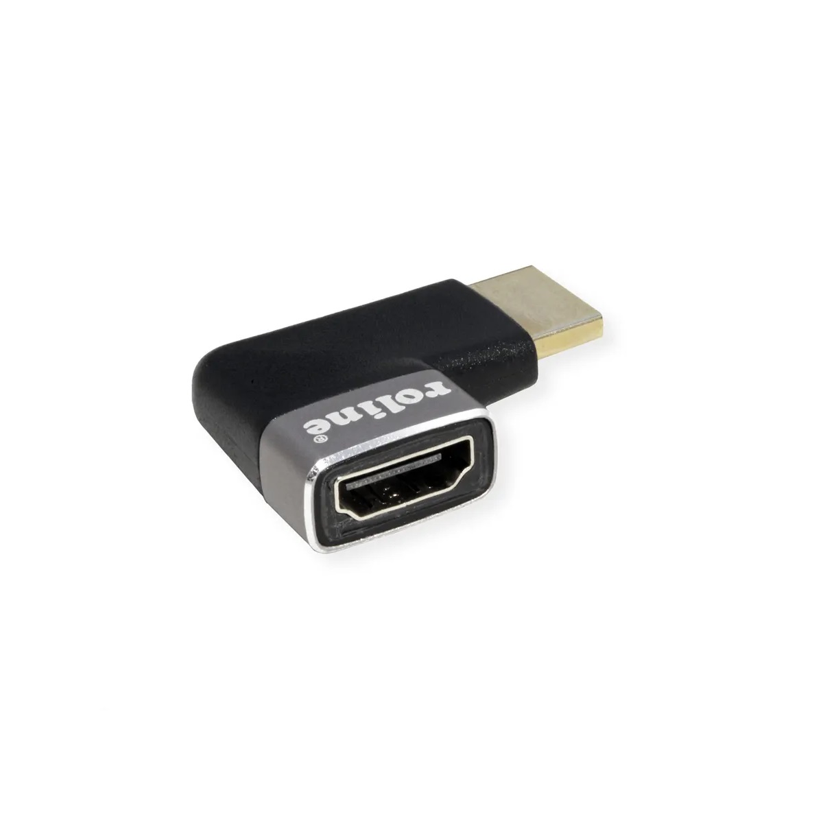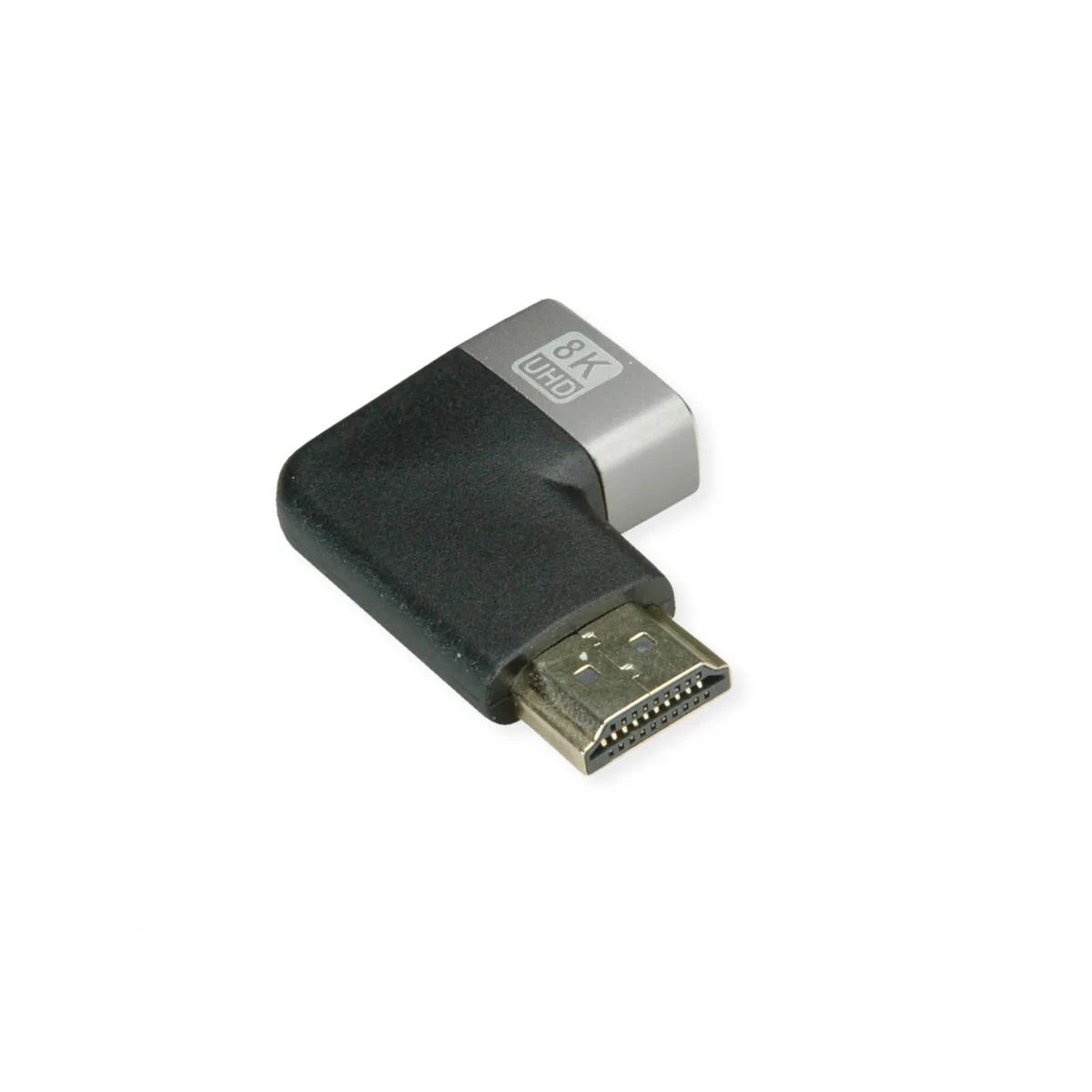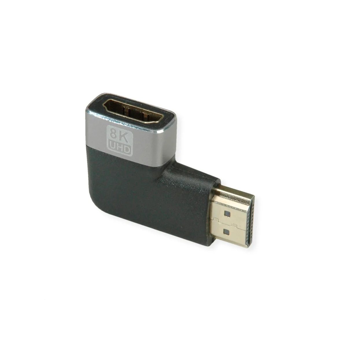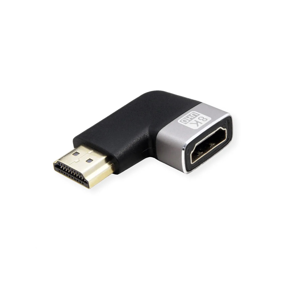 - 90° ъглов HDMI адаптер за свързване, например, на графична карта с HDMI към монитор с HDMI връзка – с резолюция до 7680×4320 при 60Hz!