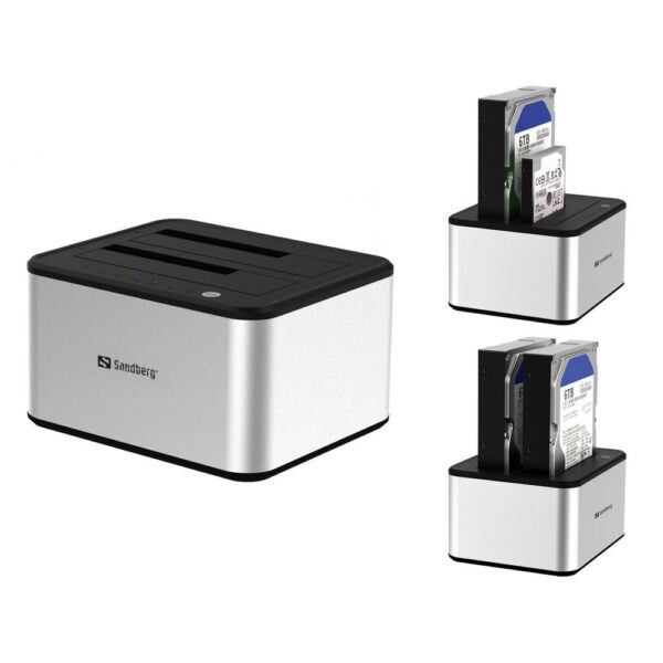 Устройството за клониране Sandberg USB 3.0 Hard Disk Cloner е идеалното решение, когато трябва да копирате, прочетете или запишете големи обеми от данни бързо и лесно. Устройството за клониране притежава два SATA слота, така че можете да свържете едновременно два хард диска към Вашия компютър. Двата SATA слота Ви позволяват да клонирате съдържанието на единия диск върху другия без каквато и да е връзка към компютър.