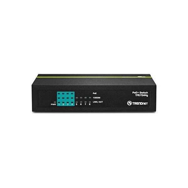 - Портове: 4 x Gigabit Auto-MDIX PoE/PoE+ RJ-45 ports / 4 x Gigabit Auto-MDIX RJ-45 ports