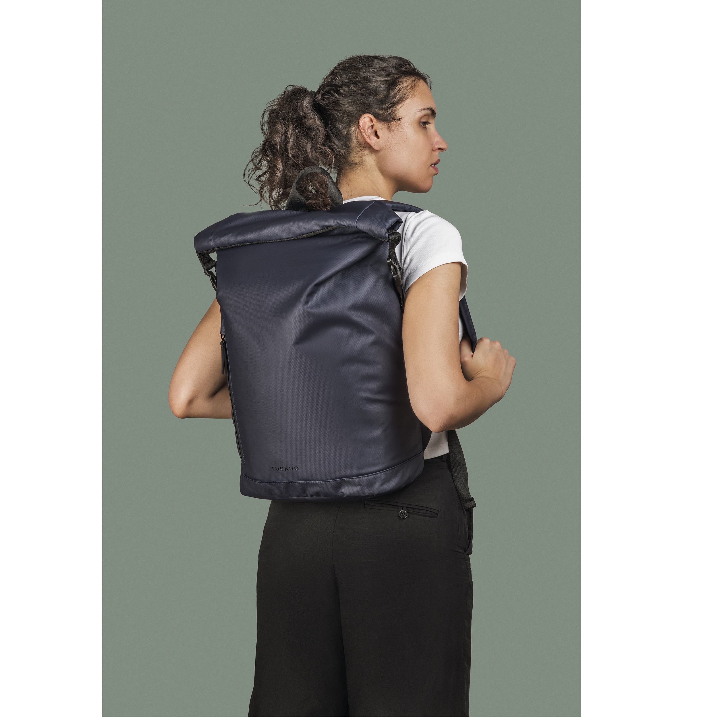 Раница с рол-он капак за 15,6-инчови лаптопи и 16-инчови MacBook-и, изработена от рециклирана, водоустойчива материя с покритие. Оборудвана с голямо отделение, раницата Rollo разполага с вътрешен джоб за лаптоп, външен джоб за аксесоари и подплатени, регулируеми презрамки, което я прави удобна и полезна както за работа, така и за свободното време.