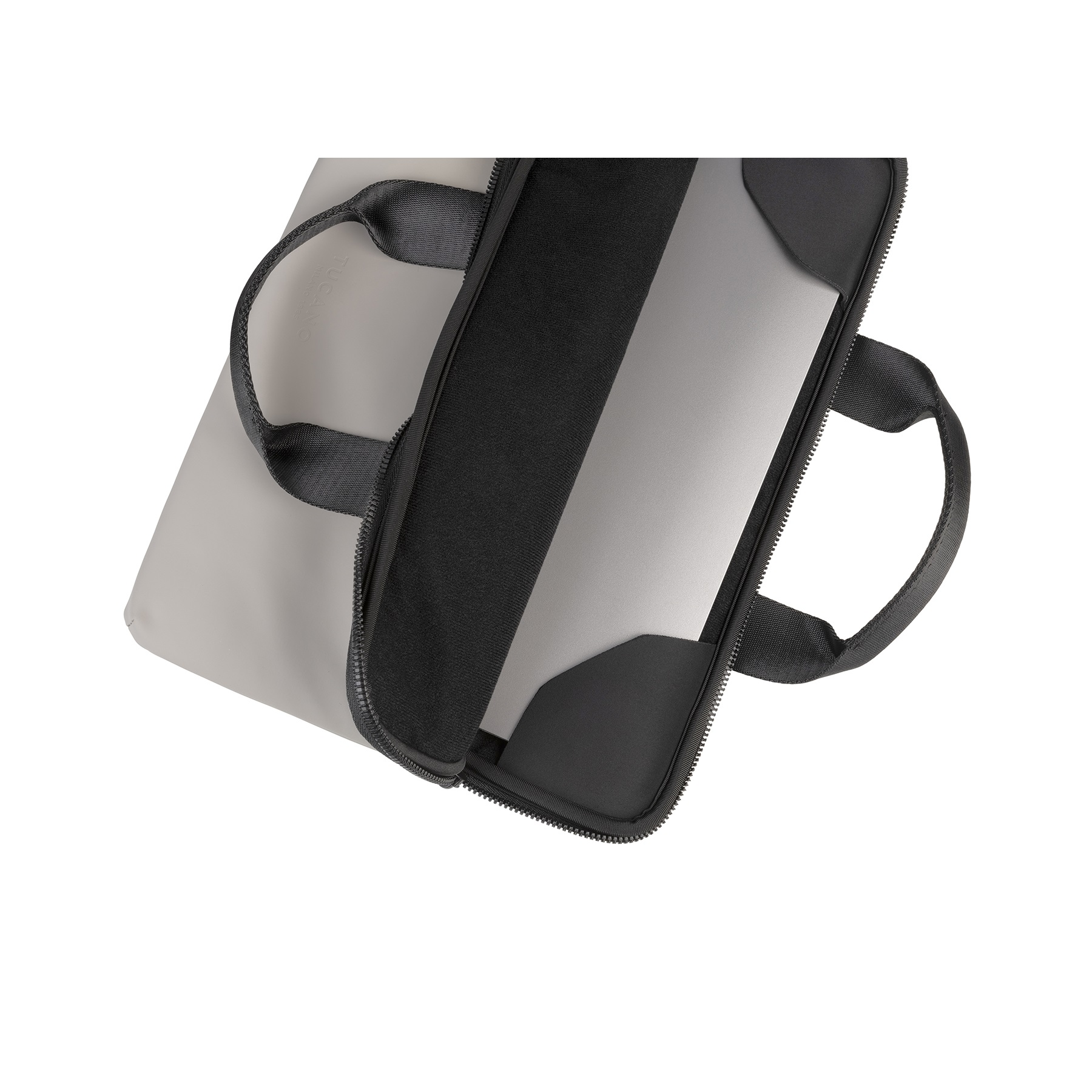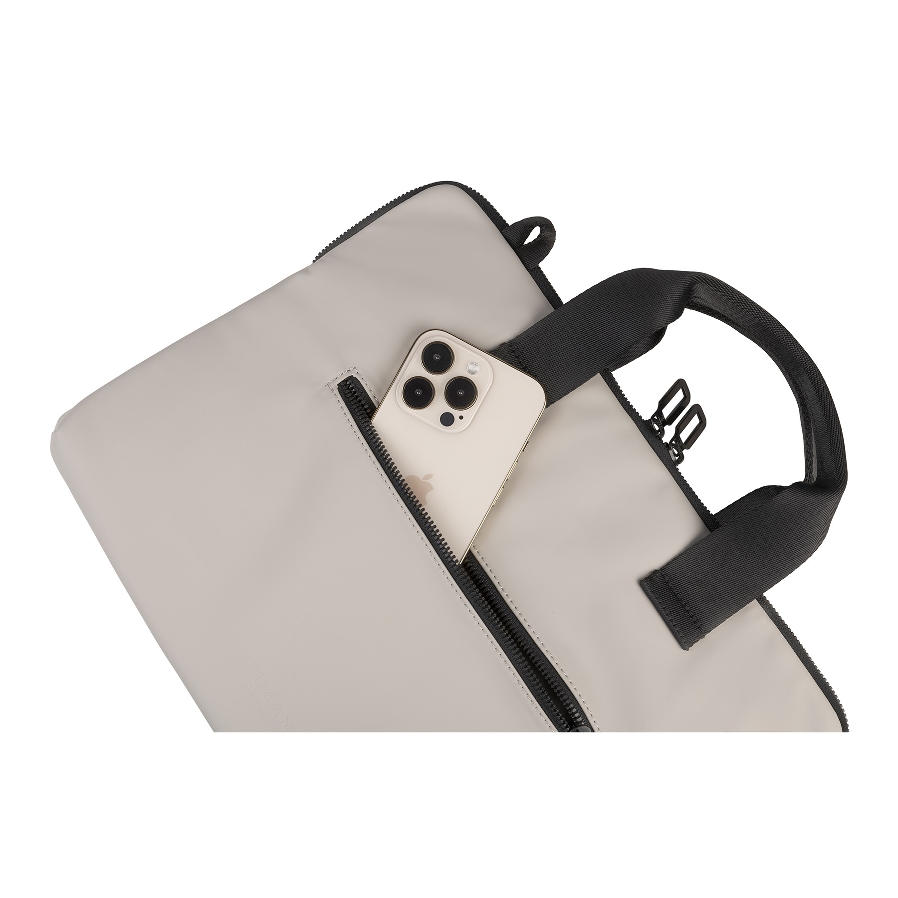 Водоустойчива чанта от гумиран материал, предназначена за 14-инчови лаптопи и 15-инчов MacBook Air. С едно подплатено отделение с неплъзгащи се ъглови капаци, чантата Gommo има удобен външен джоб за аксесоари. Предлага се с подвижна презрамка.