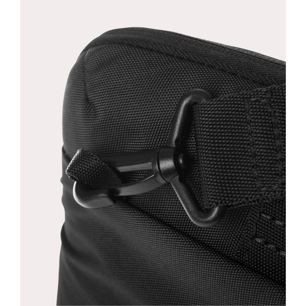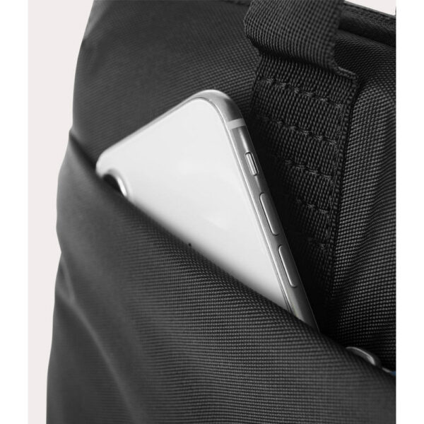Супер тънка чанта за лаптоп 14″ и MacBook Pro 14″, изработена от плат, произведен от рециклирана пластмаса с детайли в контрастен цвят. Единично вътрешно отделение с неопренови ъгли за защита на вашия лаптоп. Предната страна разполага с просторен външен джоб. Двойни дръжки и подвижни рамене.