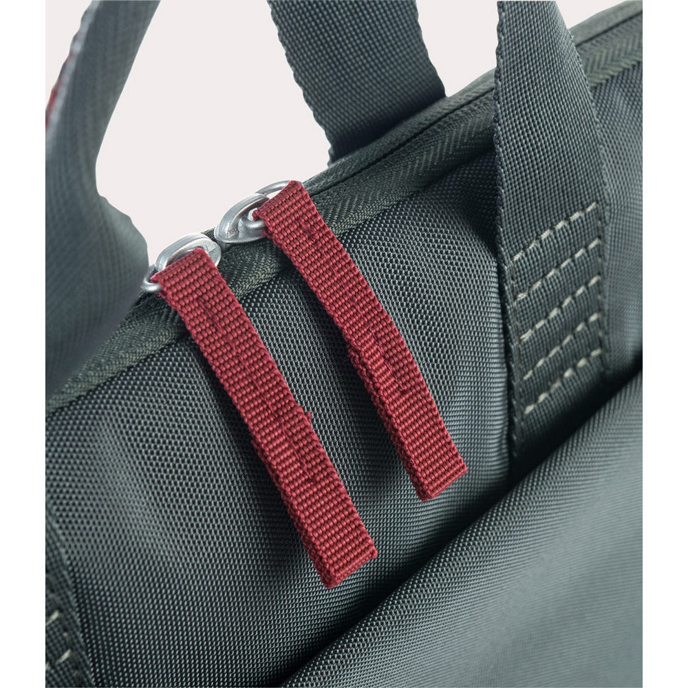 Супер тънка чанта за лаптоп 14″ и MacBook Pro 14″, изработена от плат, произведен от рециклирана пластмаса с детайли в контрастен цвят. Единично вътрешно отделение с неопренови ъгли за защита на вашия лаптоп. Предната страна разполага с просторен външен джоб. Двойни дръжки и подвижни рамене.