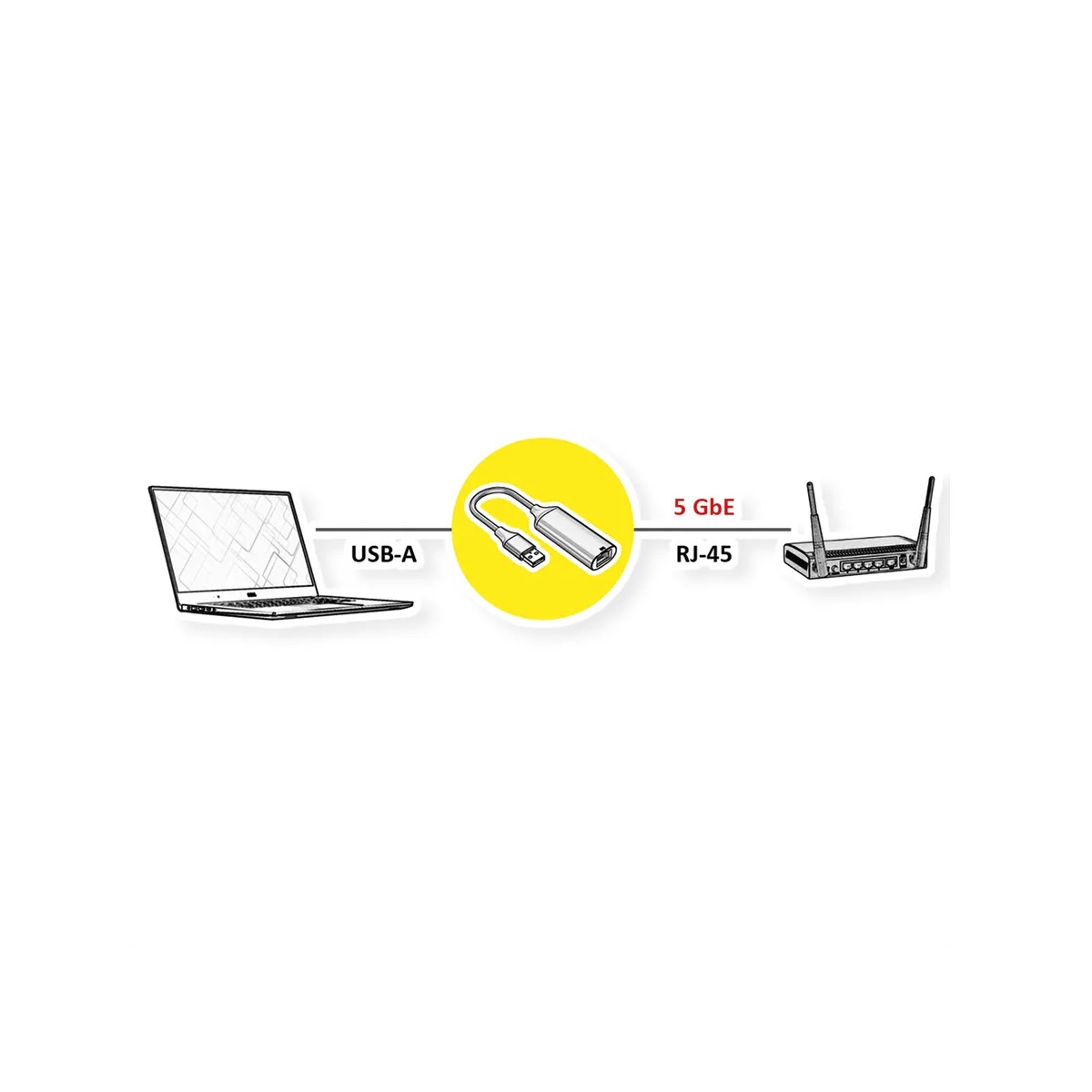• С този конвертор можете да свържете вашия компютър или лаптоп с USB Type A интерфейс към мрежа с до 5 Gigabit Ethernet.