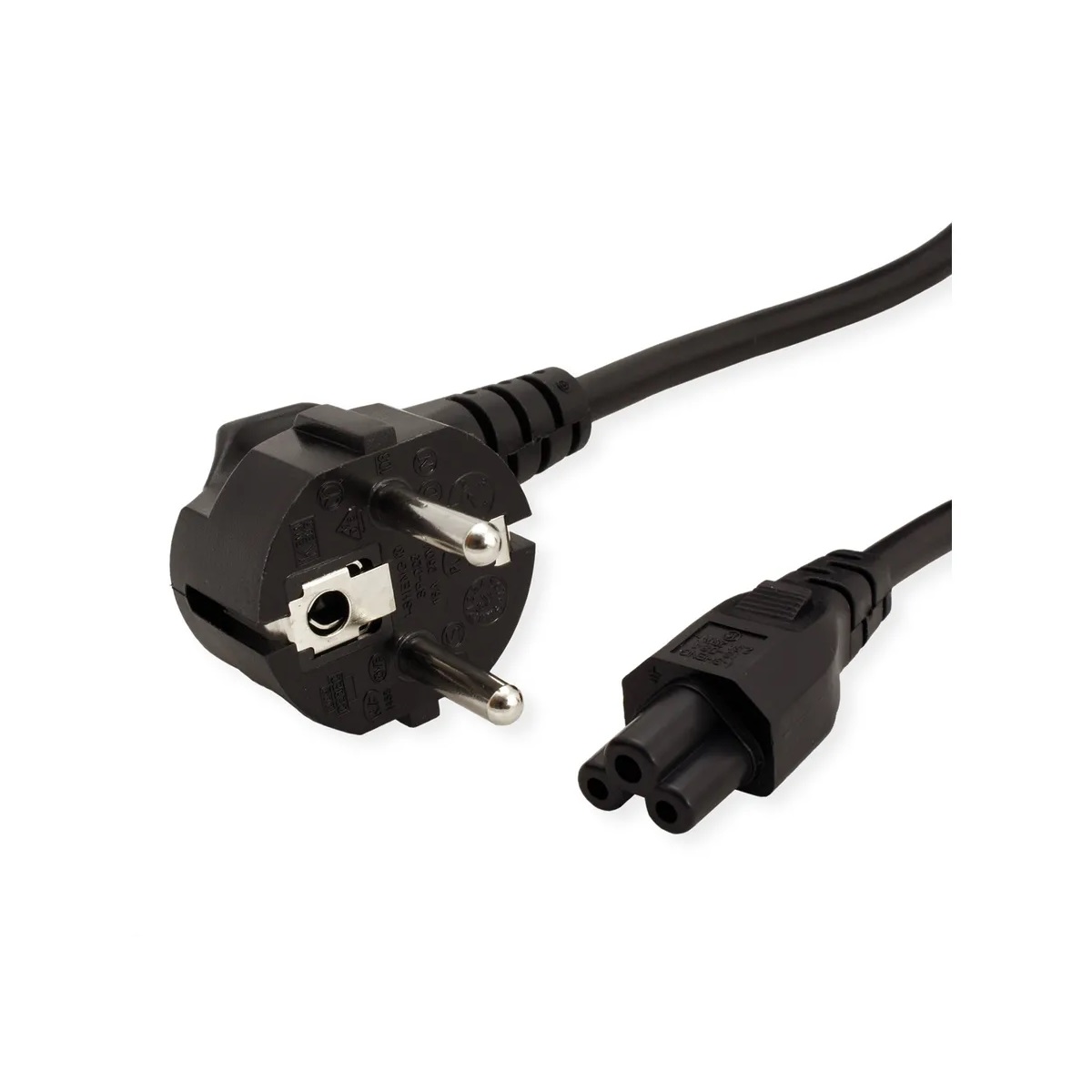 - Захранващ кабел VALUE с 90° ъглов защитен щепсел (немски щепсел CEE 7/7) и 3-пинов конектор за лаптоп (C5 / Mickey Mouse / Compaq).